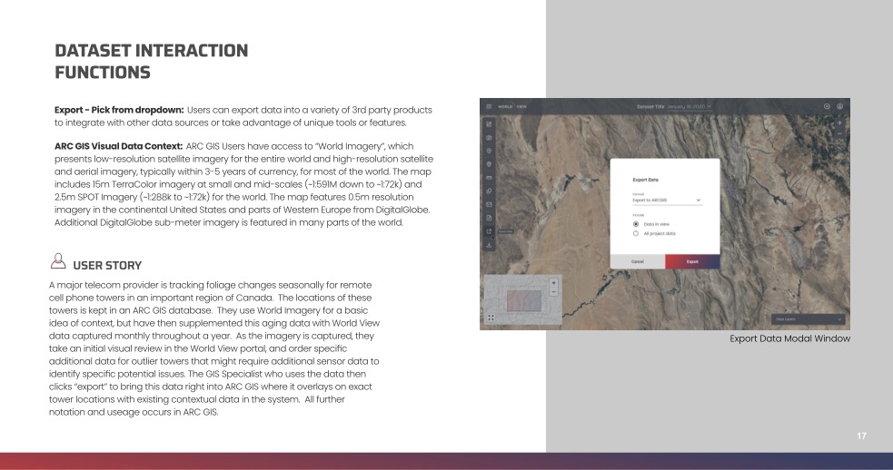 WorldView was looking to research and explore product market fit. They operated a fleet of high-altitude balloons that could carry a variety of payloads, but specifically their visual data represented a unique selling proposition. High altitude balloons combine the quality of low-altitude surveillance techniques, with the near-24/7 coverage of more typical satellite imagery.
