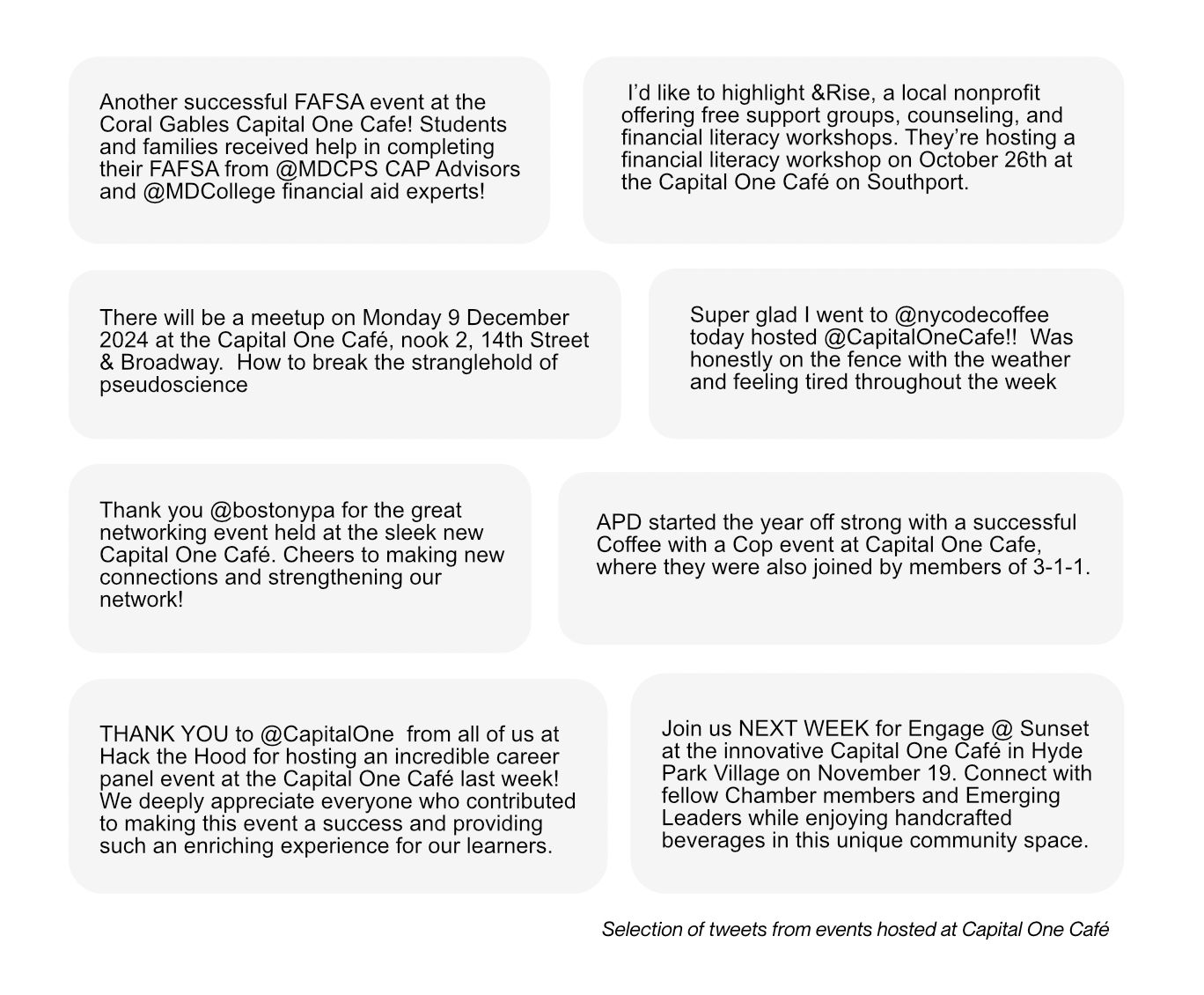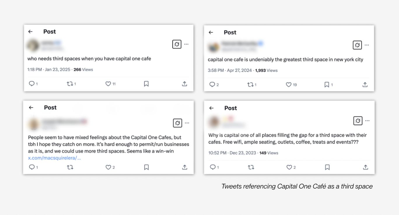 From a theoretical perspective, Capital One Café is well-positioned as a third space, but more importantly, social data reveals that locations have in fact already begun to fill this need for patrons.